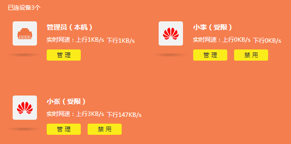 答:在路由器界面的 设备管理 中,点击各终端设备的 管理,点击 取消限速 即可。