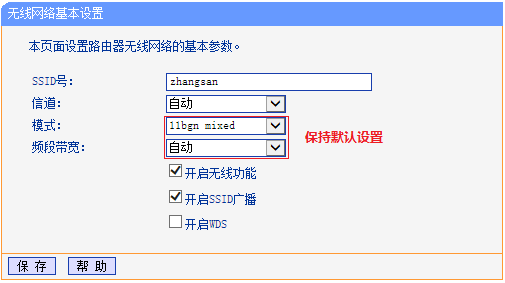 如修改无线模式为11bg mixed、11g only、11b only,或修改频段带宽为20MHz,会影响无线路由器信号的最大无线速率,请保持默认设置。