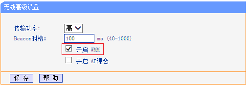 在 无线设置 >> 无线高级设置,如不勾选 开启WMM,此时路由器工作在11g模式,无线速率为54Mbps,无线终端连接路由器协商速率最高为54Mbps。如非必要,请勿修改此选项。