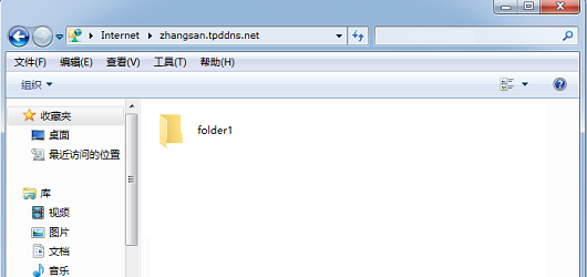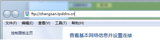 根据以上设置,外网用户在资源管理中输入域名地址或WAN口的IP地址即可访问到存储设备的共享文件,访问形式为:ftp://域名(zhangsan.tpddns.cn)或ftp://WAN口的IP地址,如下图: