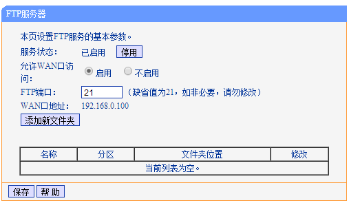 传统界面的双频无线路由器只有FTP服务器支持外网访问,其他文件共享功能不支持外网设备访问,具体设置方法如下: