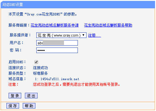 输入花生壳的用户名和密码,登录成功后,会显示对应的域名信息,如下图: