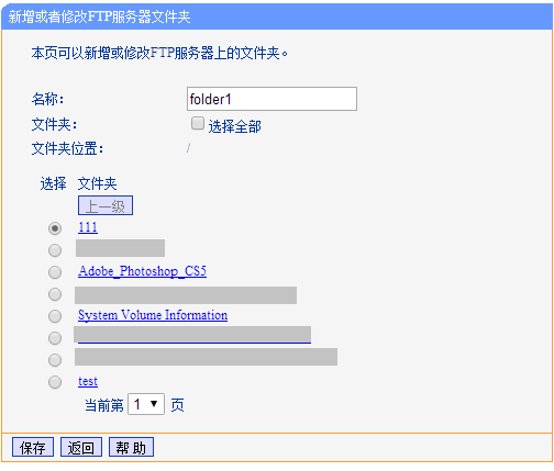 点击 添加新文件夹,选择外网用户需要访问的共享文件,点击 保存,如下图: