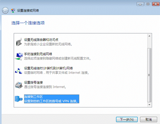 2)、“选择一个连接选项”选择“连接到工作区”。