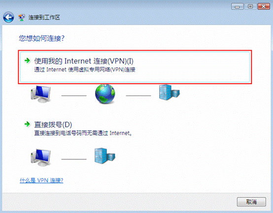 3)、“您想如何连接?”选择“使用我的Internet连接(VPN)”。