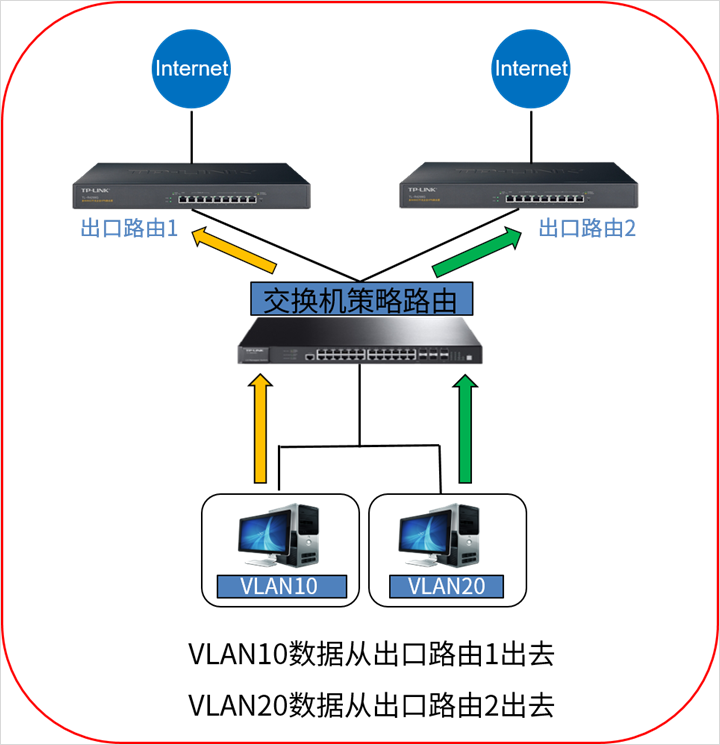 网管小李:请问我想让交换机下的不同网段的电脑走不同的出口路由,交换机可以实现吗?