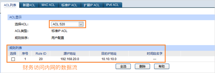 b、配置标准IP ACL