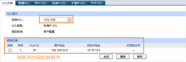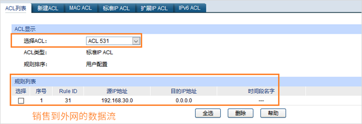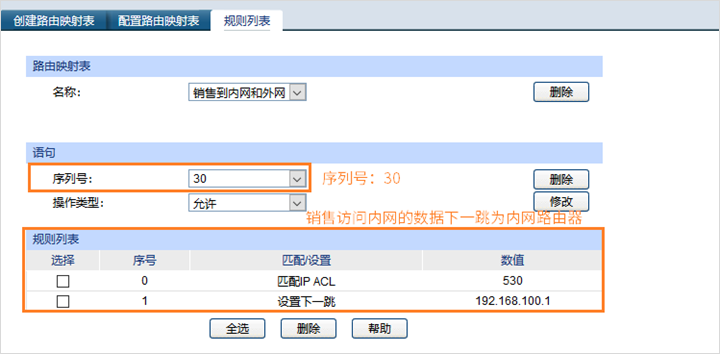 本次列举销售部访问内网和外网数据流匹配操作。