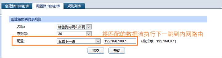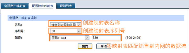 配置路由映射表,针对数据流配置交换机的转发操作,在交换机Web界面:“路由功能”—“路由映射表”—“创建路由映射表,配置路由映射表”,创建路由映射表名称 》》路由映射表匹配数据流 》》针对匹配的数据流执行的转发操作: