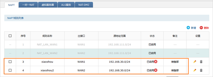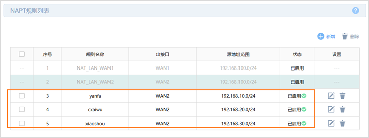 内网路由器NAPT规则: