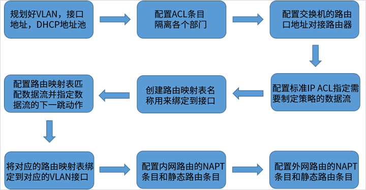 至此,以上需求便可以通过配置交换机的策略路由功能全部实现,是不是感觉很强大呢?那还不抓紧时间操作一把。